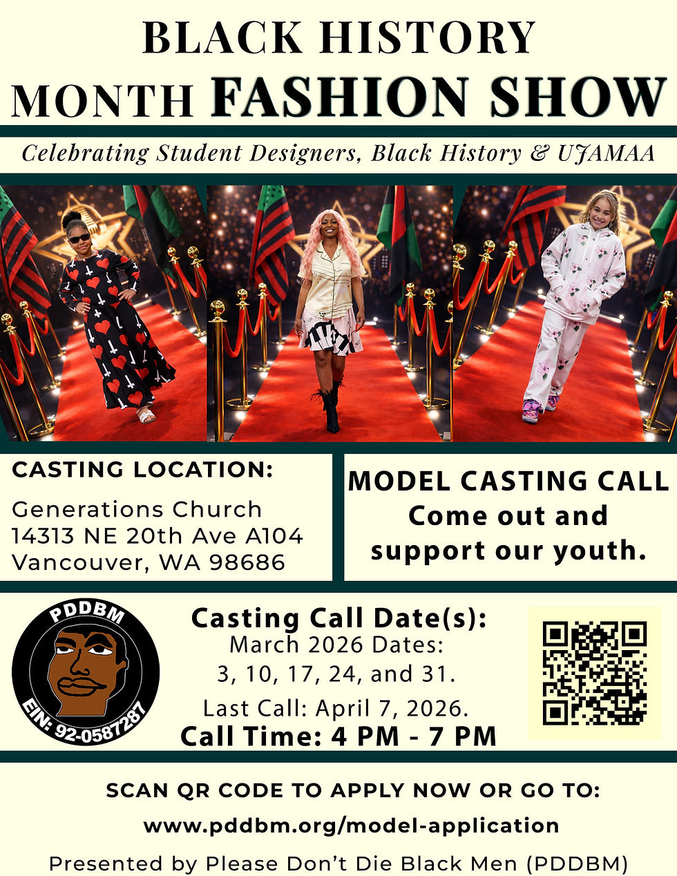 Due to unforeseen circumstances beyond our control, the 2026 Black History Month Fashion Show has been moved to Saturday, May 23, 2026.